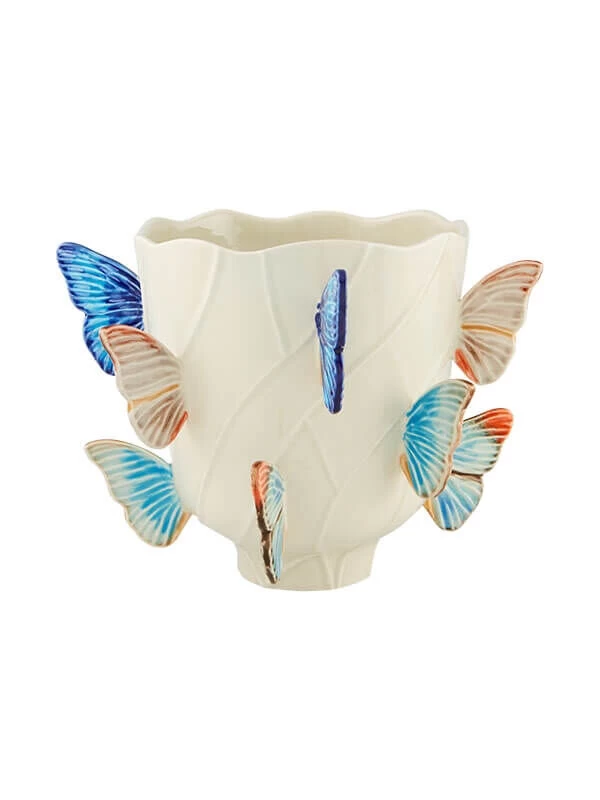 De Bordallo vaas is gemaakt van geglazuurd aardewerk dat is bedekt met kleurrijke vlinders. De vaas heeft een diameter van 31,8 cm en een hoogte van 23,6 cm, de totale inhoud van de vaas is 5 liter. Gebruik de vaas, ontworpen door Claudia Schiffer, voor een mooi boeket. Een echte aanwinst voor uw interieur!