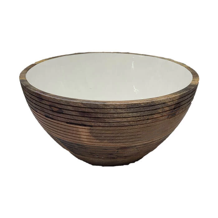 Op zoek naar een stijlvolle schaal om (zomerse) salades of andere gerechten te serveren? Dit exemplaar van By Room is er één voor op uw wensenlijst! Het item is vervaardigd uit mangohout en heeft een rond design met een diameter van 30 cm. De binnenkant is voorzien van een sticker met witte print voor een speels effect. Combineer de schaal met het bijpassende slacouvert voor een elegant geheel.
