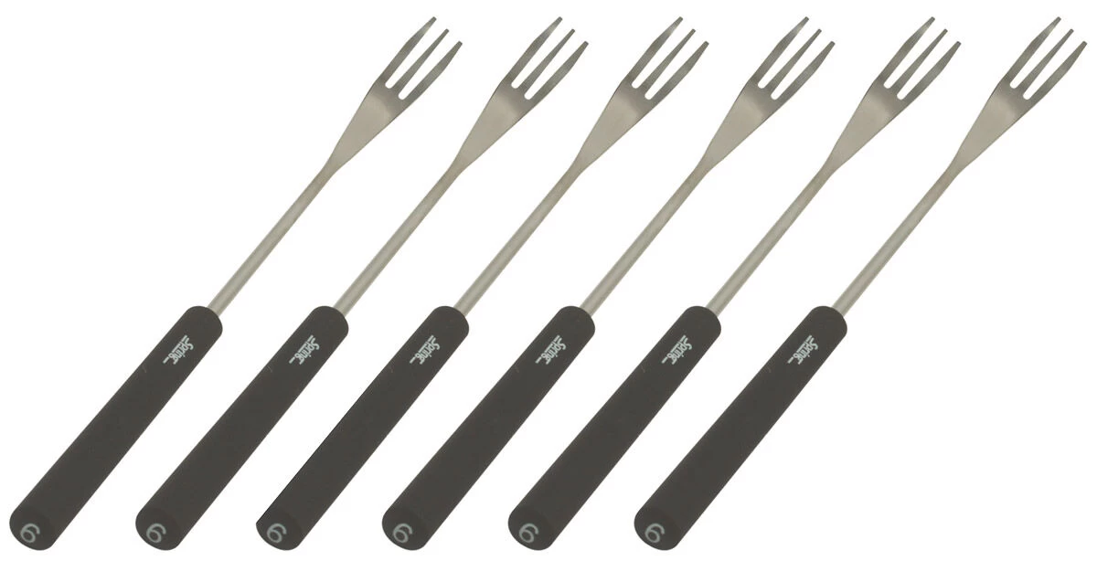 De Spring fonduevorken worden geleverd in een set van 6 stuks. De fonduevorken zijn van roestvrij staal en zwart kunststof en hebben een lengte van 26 cm. Gebruik de vorken met 3 tanden bij uw kaas-, chocolade- of Chinese fondue.